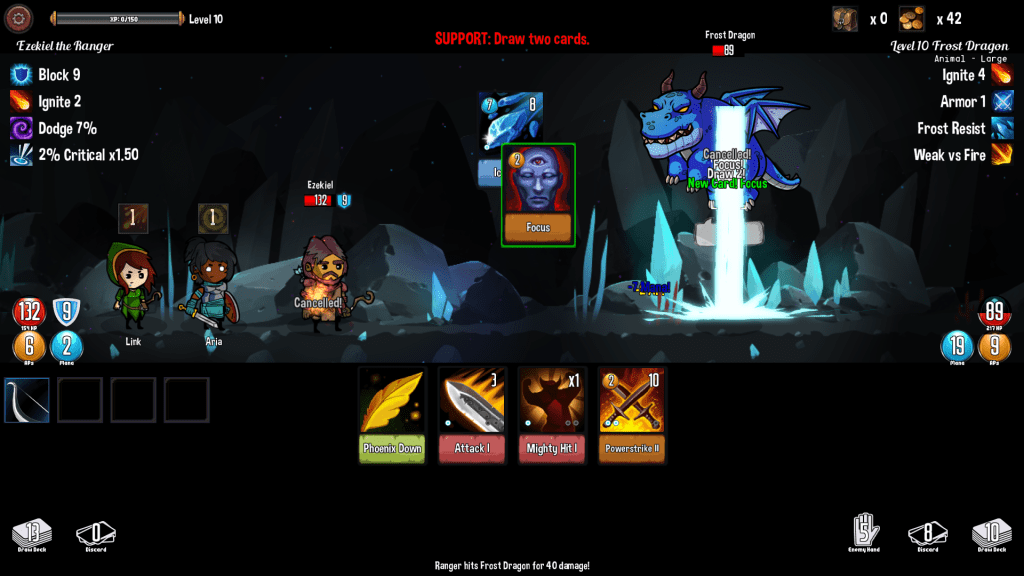 When I said earlier that this is a tightly designed game, one example is that you can actually feel the rigorous playtesting throughout. There aren’t a million cards in it, and most of them only do two things at most, but they are extremely well-considered and versatile puzzle pieces. YouTube has countless tier lists of what experts consider the best cards to be, with a surprising lack of consensus. This suggests a remarkable balance that caters to a wide range of playstyles. With that in mind, here’s one I like for each of the four classes: