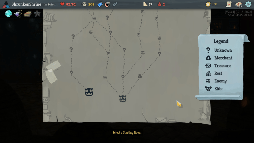 This nicely leads me into the game’s capacity to add difficulty modifiers, called ‘Ascensions’. Completing a run with the first Ascension active (which simply adds more elite battles) unlocks the next Ascension (regular enemies deal greater damage). The wrinkle is that these stack upon one another, all the way up to Ascension 20, by which point you’ll be laboring under all manner of handicaps, such as decreased maximum HP, limited inventory slots, or mandatory unplayable cards cluttering your hand. There are people out there who are capable of beating the game at ‘A20’ with a starting deck of only eight mid-tier cards or speedrunning it in 5 minutes. None of these feel like poor design, either. Like many RPGs (and unlike competitive CCGs), working out ways to break the game over your knee is simply another valid way of enjoying it, if you’re into that. Make no mistake though, you’d have to be really bloody good.