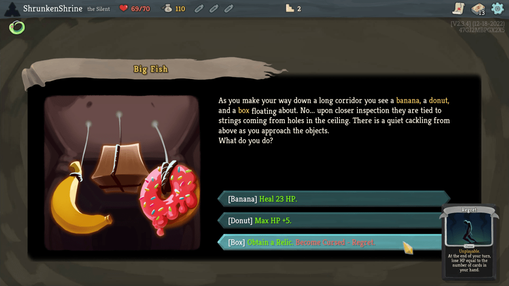 Compared even to other games that came before it, StS actually feels a lot less random, and I think this has actually helped it endure in the long run. You are likely to come across certain enemies almost every run, but because your deck build will have changed, you are forced to approach them in new ways. Another thing is that most of the classes only have three or so main ‘builds’ (several variations and derivatives are possible depending on circumstances). The Silent, for example, is likely to be stacking poison on their foes or drawing and playing many as many low-damage shivs as possible. As such, you are better able to form builds earlier in runs. I think this has actually added to the game’s longevity with streamers and speedrunners. The curve of learning what your enemies and cards are capable of doing is gentle and engaging, and even masters of the game who seemingly know every ramification of every scenario like the back of their hand keep coming back for more with self-imposed challenges and a healthy modding scene.
